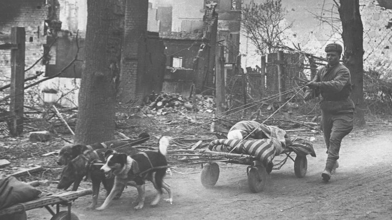 Собаки-санитары: их называли «мохнатыми ангелами». Они находили раненых, подползали к ним с медицинской сумкой, ждали, пока боец перевяжет рану, и помогали ему доползти до безопасного места — в буквальном смысле тащили по земле, схватив за одежду зубами. Самый, пожалуй, известный пес-санитар — Мухтар, он помог спасти более 400 человек.